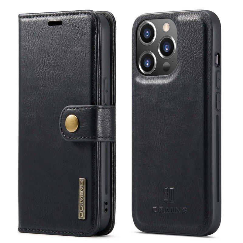 DG.MING iPhone 14 Pro Äkta Läder Plånboksfodral 2-i-1 Magnetisk Svart