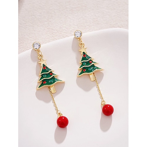 orecchini da donna a forma di albero di Natale – materiale in lega con perle e diamanti, perfetti per feste e occasioni festive