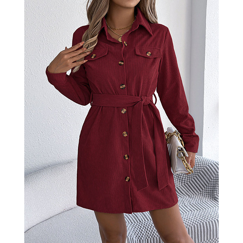 Women's Mini Dress Shirt Dress Fashion Modern Daily Office Holiday Regular Fit Plain Long Sleeve Shirt Collar Black Wine Khaki Spring Fall Winter