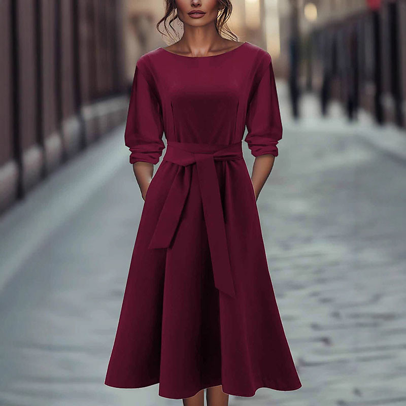 Women's Midi Dress Black Dress Casual Dress Elegant Fashion Modern Daily Going out Weekend Regular Fit Plain 3/4 Length Sleeve Crew Neck Black Wine Green Khaki Spring Fall Winter