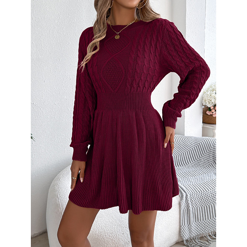 Women's Mini Dress Sweater Dress Casual Dress Elegant Fashion Modern Daily Office Vacation Regular Fit Plain Long Sleeve Crew Neck Black Wine Green Khaki Spring Fall Winter Autumn