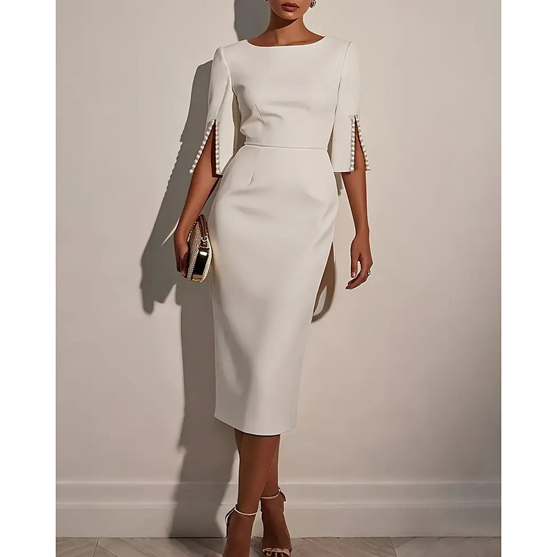 Women's Midi Dress Black Dress Sheath Dress Elegant Fashion Modern Daily Office Holiday Regular Fit Plain 3/4 Length Sleeve Crew Neck Boat Neck Black White Pink Summer Spring Fall Winter