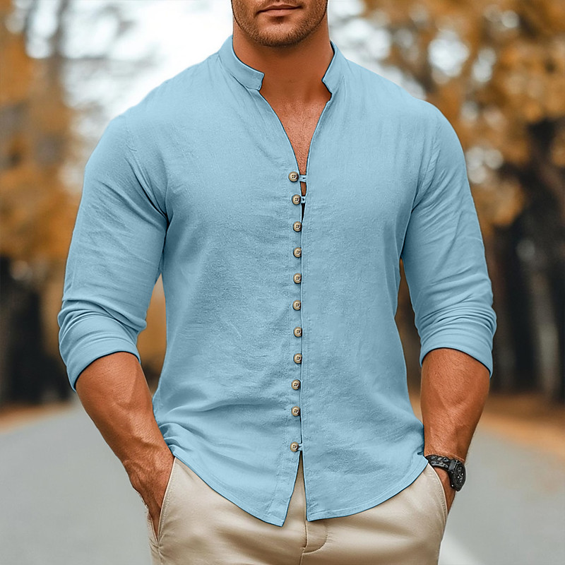 Men's Linen Shirt Popover Shirt Casual Shirt Beach Shirt Band Collar Shirt Plain Beach Vacation Black White Pink Orange Long Sleeve Mandarin Collar Summer Spring Clothing Apparel Plain