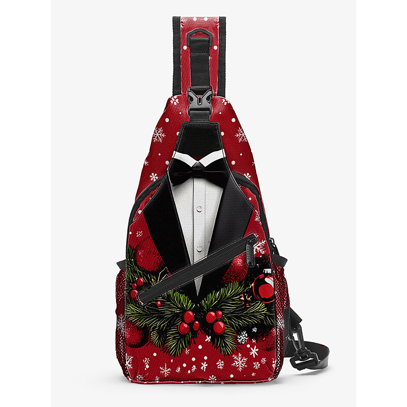 Men's Christmas Sling Bag - Polyester, Multi-Pattern Designs with Tuxedo and Holiday Motifs, Perfect for Casual and Festive Occasions