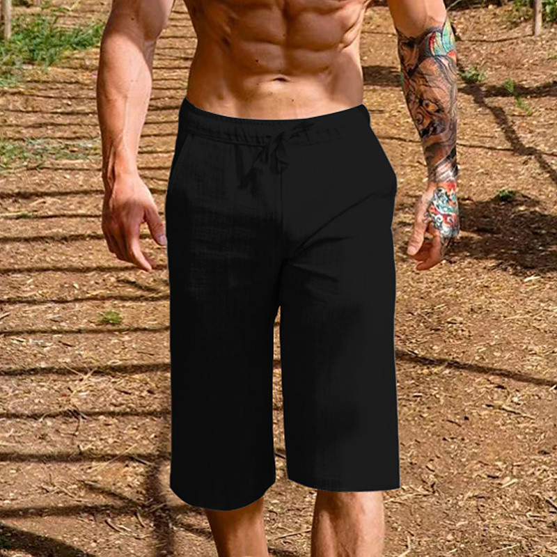 Men's Summer Shorts Beach Shorts Pocket Drawstring Elastic Waist Plain Comfort Breathable Knee Length Vacation Holiday Beach Hawaiian Boho Black White