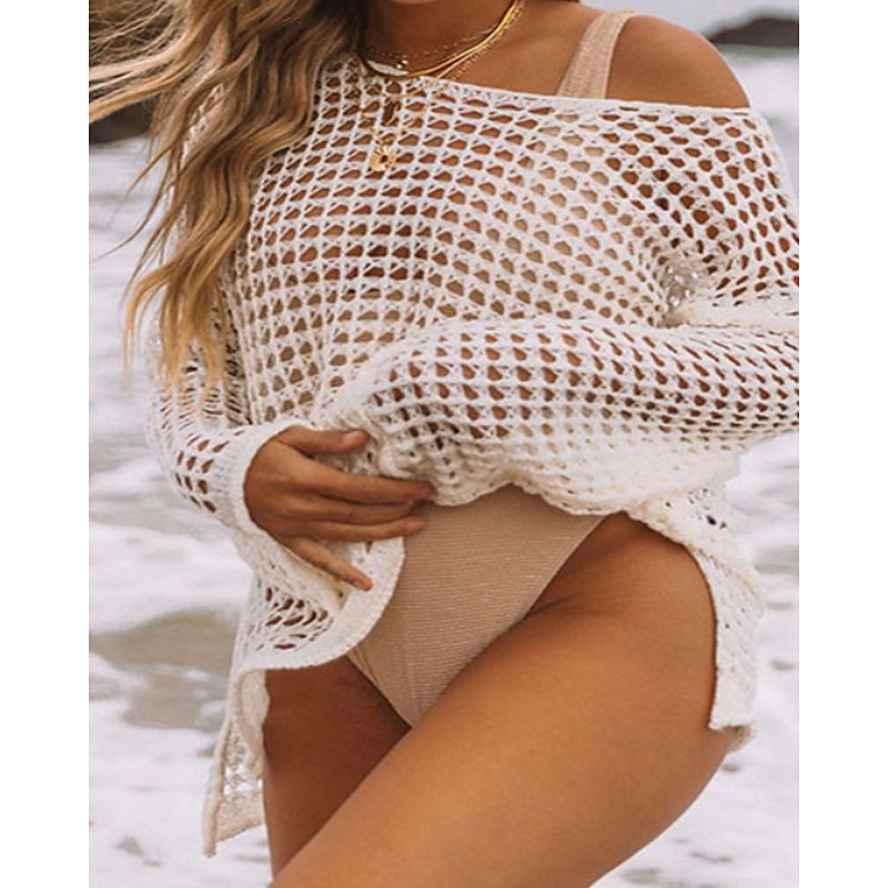 Women's Swimwear Cover Up Swimsuit Cut Out Vacation Beach Wear Plain Round Neck Long Sleeve Bathing Suits