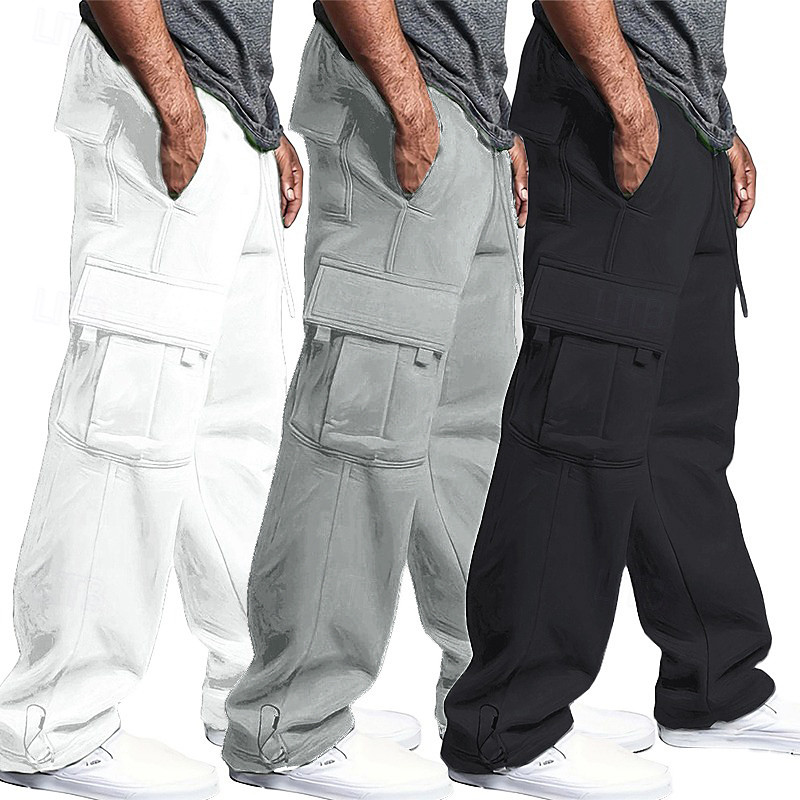 Multi Packs 3pcs Men's WhiteRedPink Wide Leg Sweatpants Trousers Drawstring Elastic Waist Plain Vacation Daily Wear Polyester Spring