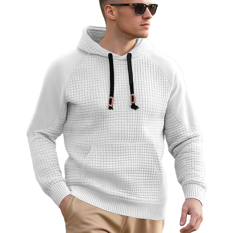 Men's Hoodie Waffle Hoodies Pullover Hoodie Sweatshirt Black White Khaki Light Grey Dark Gray Hooded Plain Pleated Patchwork Textured Sports Outdoor Casual Daily Streetwear Cool Sportswear Spring