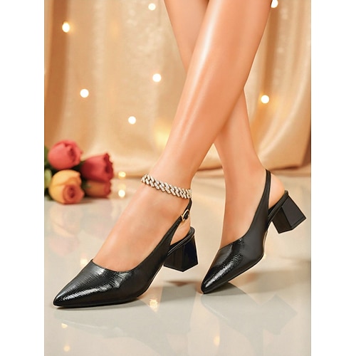décolleté da donna con tacco a blocco e cinturino posteriore metallizzato - scarpe da festa con punta lucida e appuntita per la vita notturna e l'abbigliamento da discoteca abiti da sera