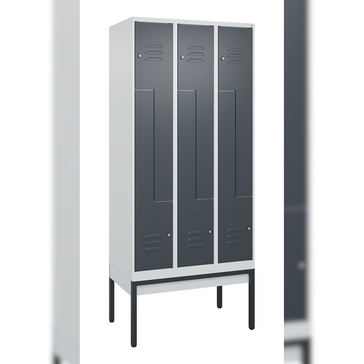 C+P Spind Classic PLUS, Füßen, 3 Abteile, HxBxT 195x120x50cm, Sicherheitsdrehriegel, Anthrazit/Hellgrau von PROREGAL