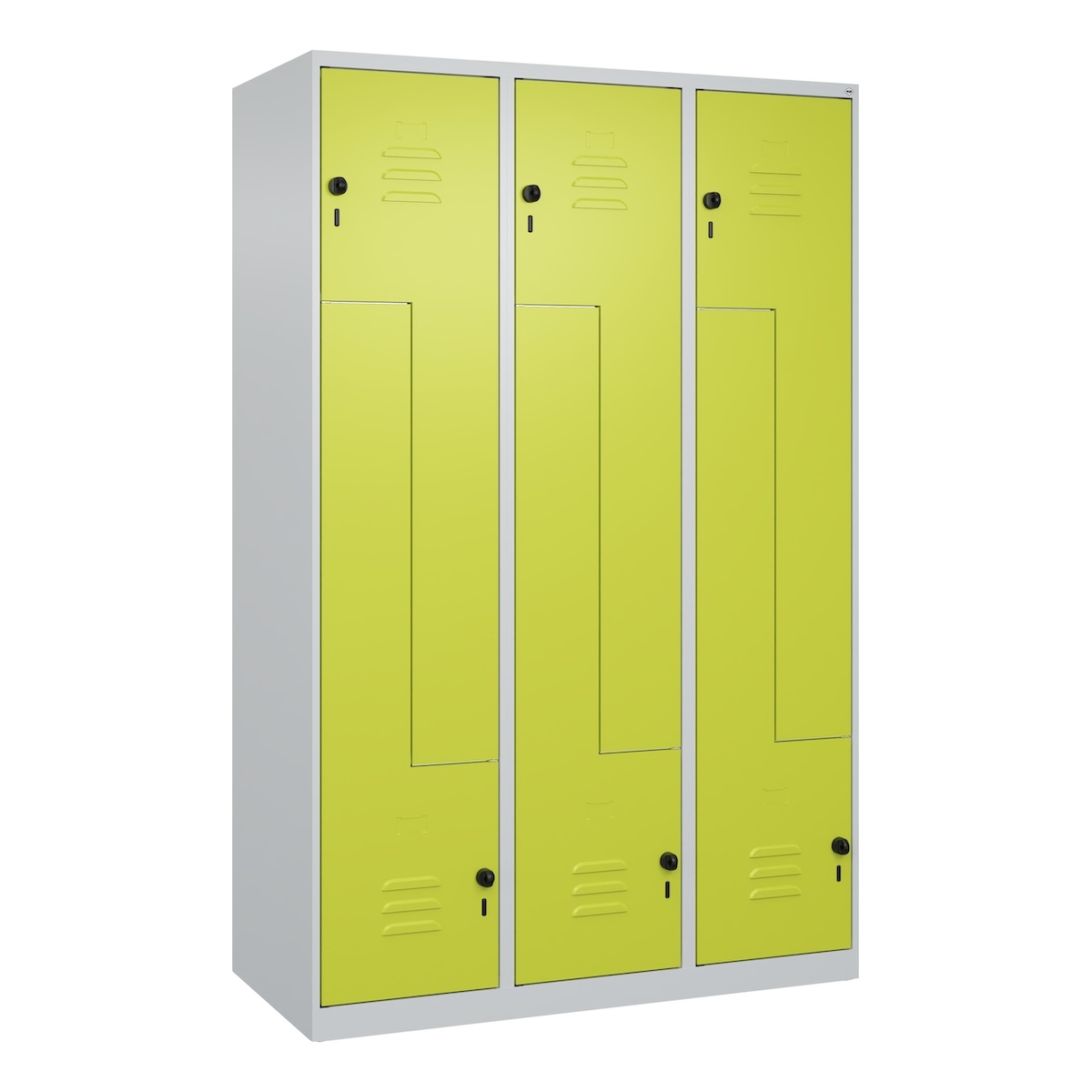 C+P Z-Spind Classic PLUS bodenstehend, 6 Abteile, HxBxT 185x120x50cm, Sicherheitsdrehriegel, Hellgrau/Clowngrün von PROREGAL