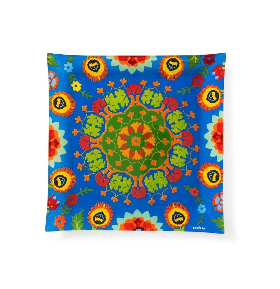 Excelsa Platte/Tablett Delhi Glas 30x2,5x30 cm Bunt