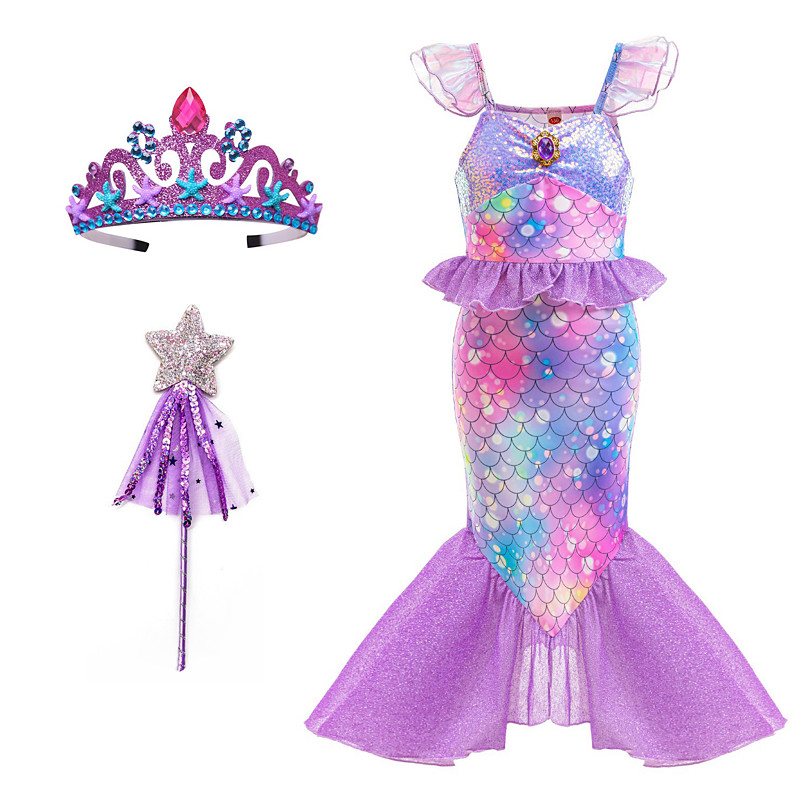 The Little Mermaid Little Mermaid Mermaid Tail Aqua Princess Dress Halloween Dress Cosplay Costume Theme Party Costume Cosplay Movie Cosplay for Girls' Kid's Carnival Masquerade