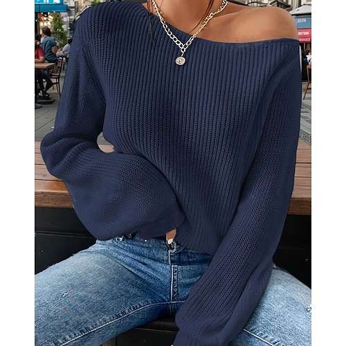 Per donna Felpa Maglione Streetwear Casual Tinta unica Senza Spalle Lavorato a maglia Manica Lunga Top Regolari Maglia Quotidiano Ferie Uscire Nero Bianco Autunno Inverno