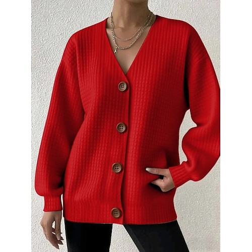 Per donna Giacca Casual Confortevole Traspirante Tasca Bottoni Casual Tinta unica Vacanza Streetwear Casuale Abbigliamento quotidiano Monopetto Regolare Scollo a V Vestibilità regolare Manica Lunga