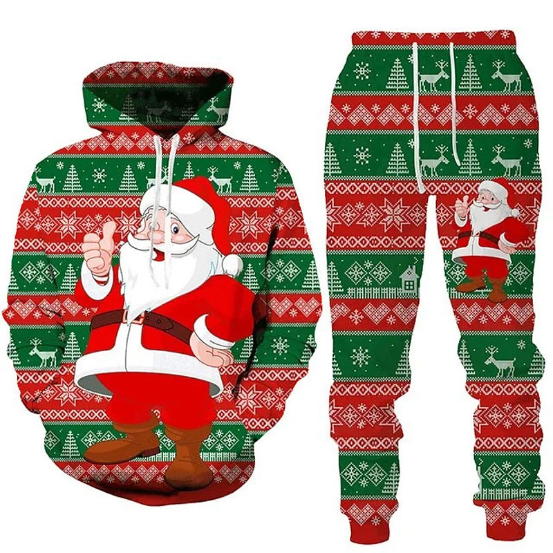 Christmas Men's Santa Claus 3D Hoodies Tracksuit Hoodies Set Red green Black White Red Navy Blue Hooded Graphic Santa Claus Snowman 2 Piece Print Sports Outdoor Casual 3D Print Streetwear Designer