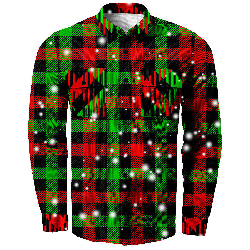Christmas Men's Plaid Corduroy Shirt Shirt Jacket Long Sleeve Casual Outdoor Dailywear Holiday Fall Winter Turndown Collared Shirts Buttons 3D Print 2 Pockets 1pc Red Green