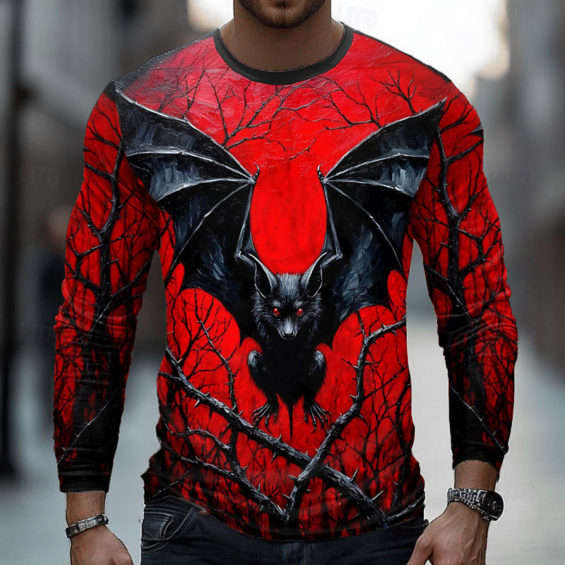 Halloween Men's Vampires T Shirt Long Sleeve T shirt 3D Print Crew Neck Shirt Fashion Exaggerated Street Casual Daily Yellow Red Green Summer Spring Fall Clothing Apparel S M L XL XXL XXXL