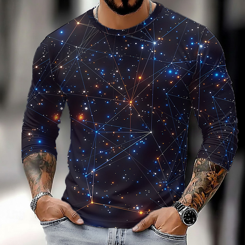 Men's Star 3D T Shirt Long Sleeve T shirt 3D Print Crew Neck Shirt Fashion Exaggerated Street Daily Blue Purple Green Summer Spring Fall Clothing Apparel S M L XL XXL XXXL