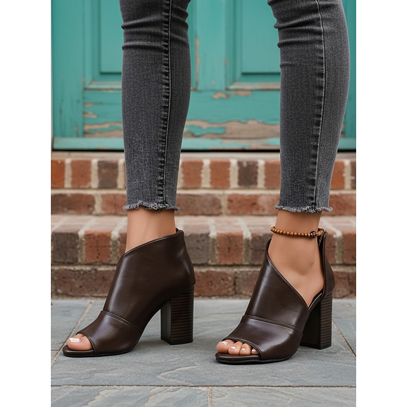 Women's Faux Leather Open-Toe Block Heel Sandals - Chic Modern Style for Daily Wear, Work Outfits and Casual Street Looks