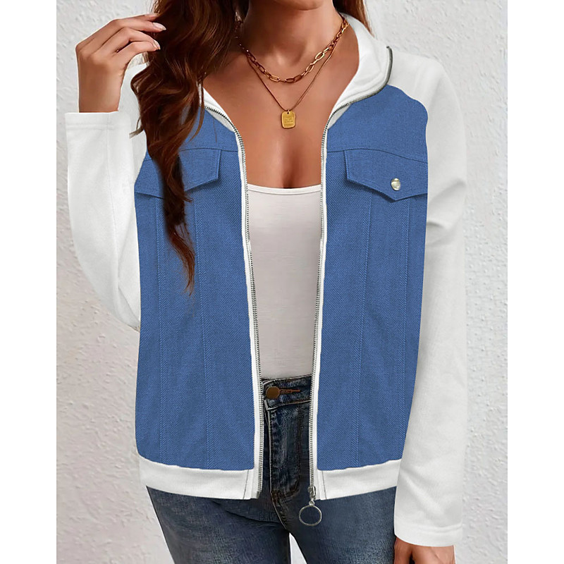 Women's Winter Coat Patchwork Zipper Pocket Elegant Fashion Classic Modern Solid Color Outdoor Vacation Home Office / Career Regular Turndown Regular Fit Long Sleeve Outerwear