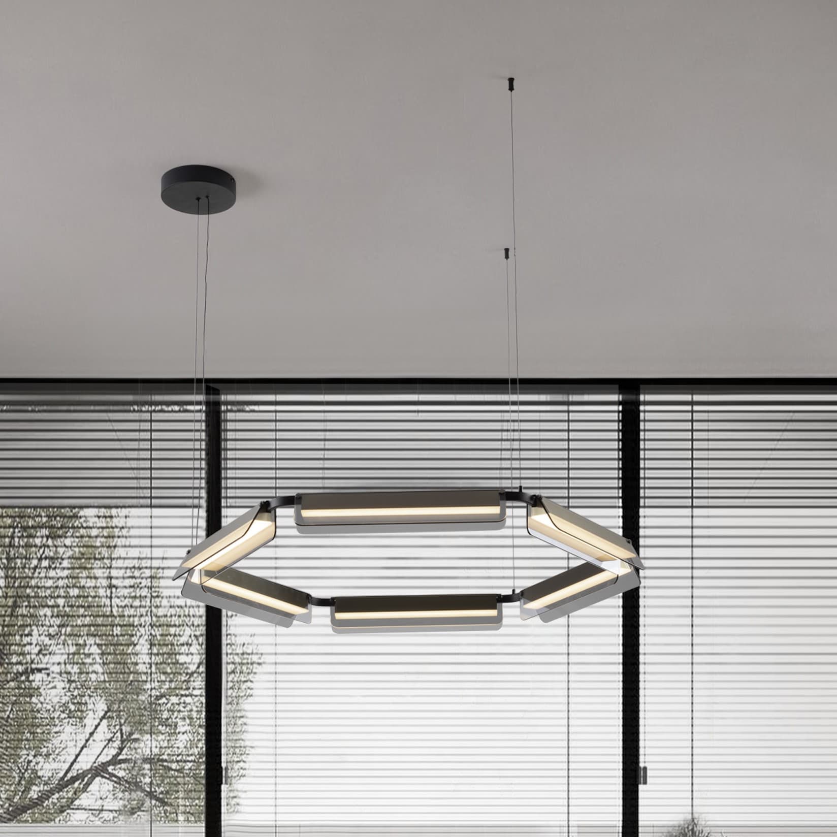 Nova Luce Apnea - hanglamp - Ø 103 x 150 cm - 61W dimbare LED incl. - zandzwart, goud en grijs