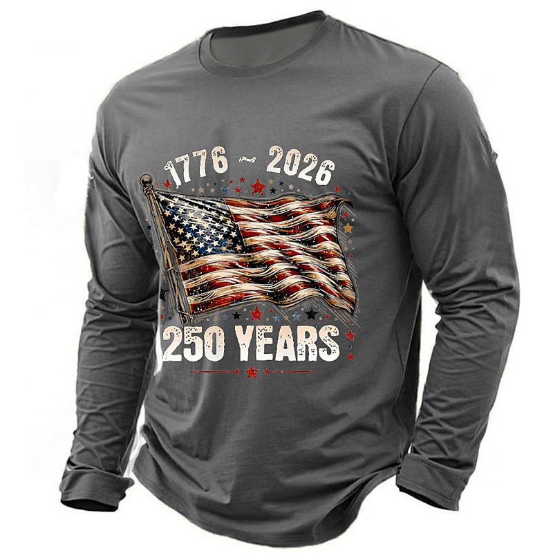 America's 250th Anniversary Men's America's 250th Anniversary T Shirt Long Sleeve T shirt 3D Print Crew Neck Shirt Daily Casual Daily Travel Party Blue Black Army Green Summer Spring Fall Clothing