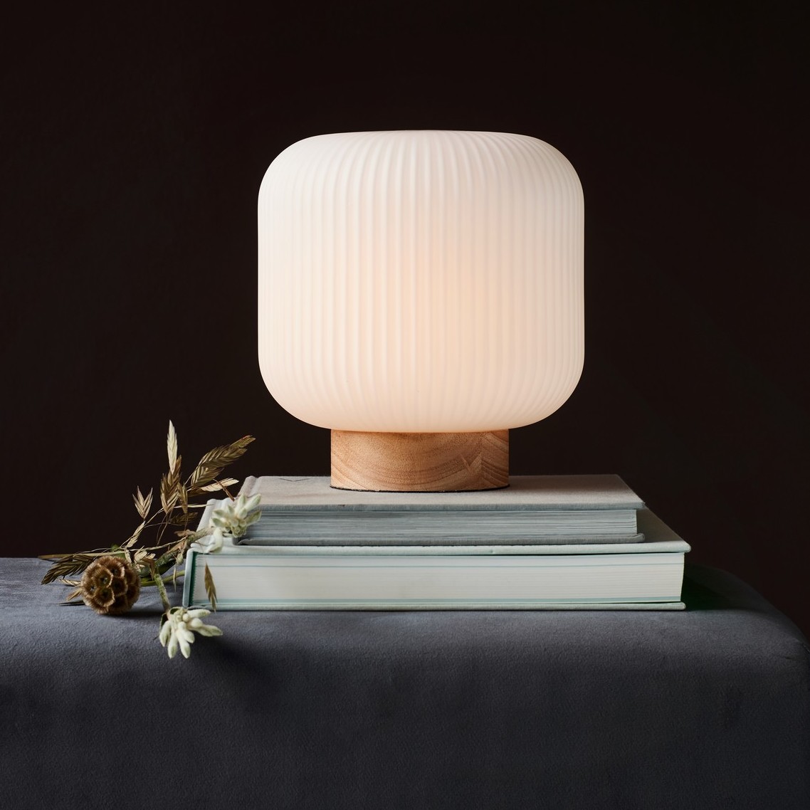 Nordlux Milford 20 - lampe à poser - Ø 20 x 21,7 cm - blanc opale et brun naturel
