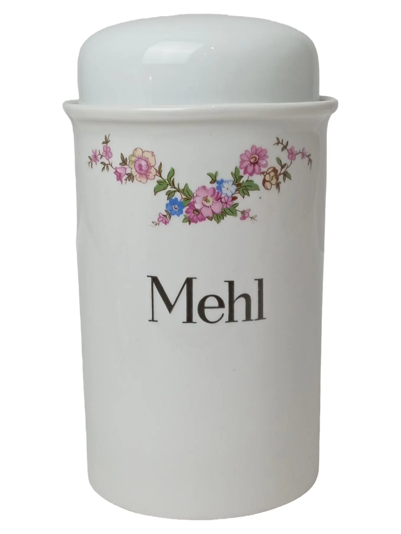 CP COLDITZ Vorratsbehälter Mehl Weiß Blumenmuster Vintage