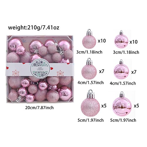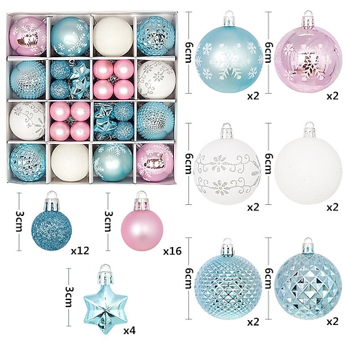 44 palline per albero di Natale, ornamenti da 3 cm e 6 cm, infrangibili, verniciate, galvanizzate, rotonde e sagomate, decorazioni natalizie, set regalo per accessori da appendere all'albero delle