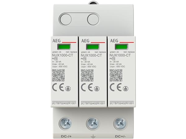 AEG NUX1000 - PV Transientbeskyttelse, T2, (L-L) 1000 V DC, max 8 / 20 µstransient afledningsstrøm 40 kA