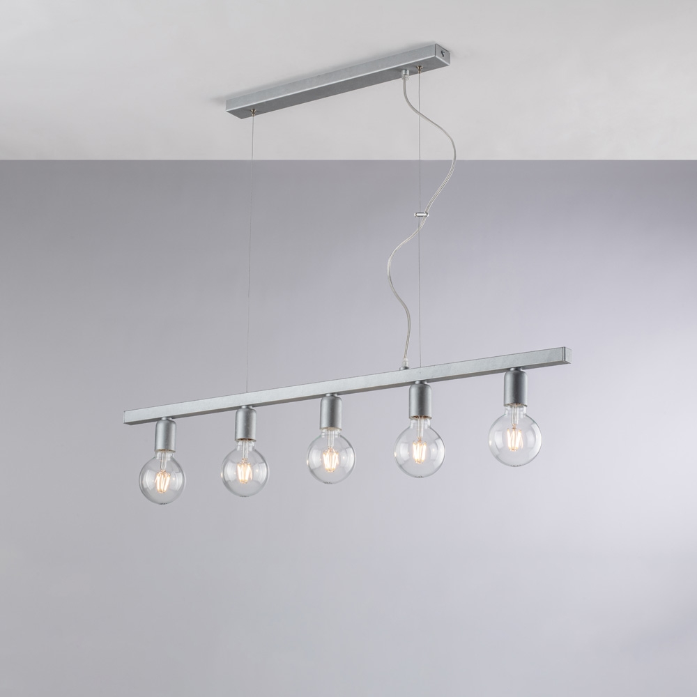 Bonetti Illumina - Fabian - Pendelleuchte aus weiß und silber lackiertem Eisen, 5 Lichter, L. 101 x 5 - BL293-5-ARG