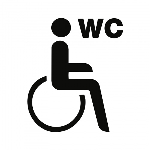 Aufkleber - Piktogramm WC Behinderte/barrierefrei mit Text "WC", Folie, 160x160 mm