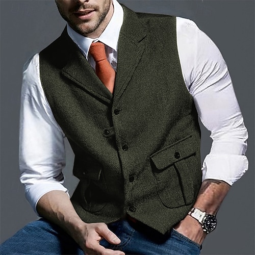 Herren Weste Gilet Urlaub Party Geschäft Mode Lässig Frühling Herbst Tasche Knöpfe Polyester Bequem Einfach Einreihig Ein-Knopf Revers Normale Passform Hellgrünkaffee Schwarz Grün Hellgrau Weste