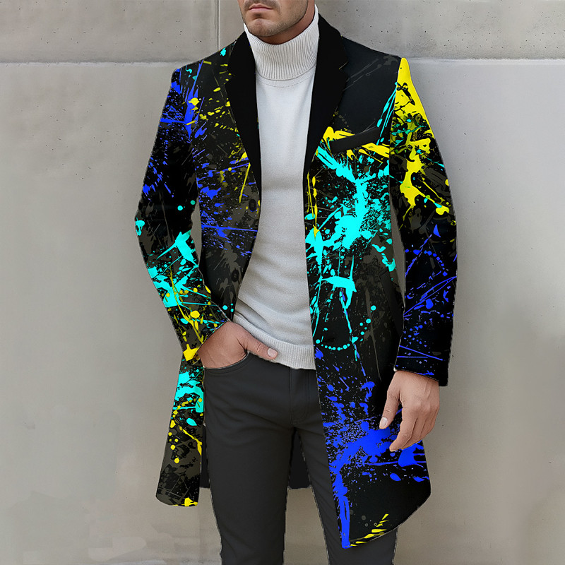 Men's Color Block Overcoat Coat Casual Daily 3D Print Buttons Front Pocket Spring Fall Winter Notch Long Sleeve Black 1 Black Black 2