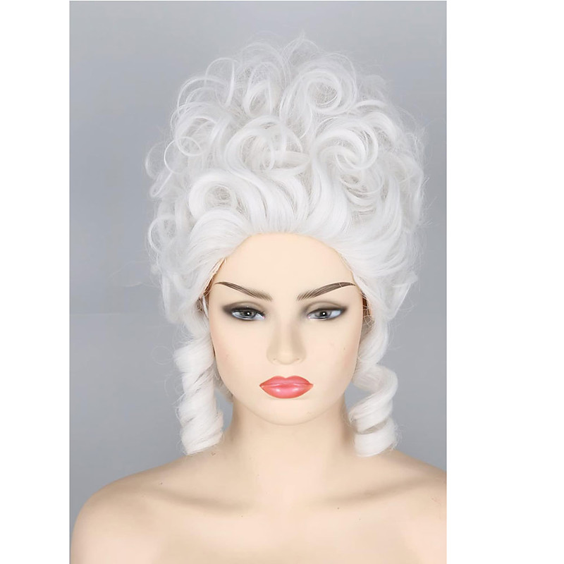 Mens Judge Colonial Wig Long Blonde Powdered Wavy Wig Costume Cosplay Party White Wigs