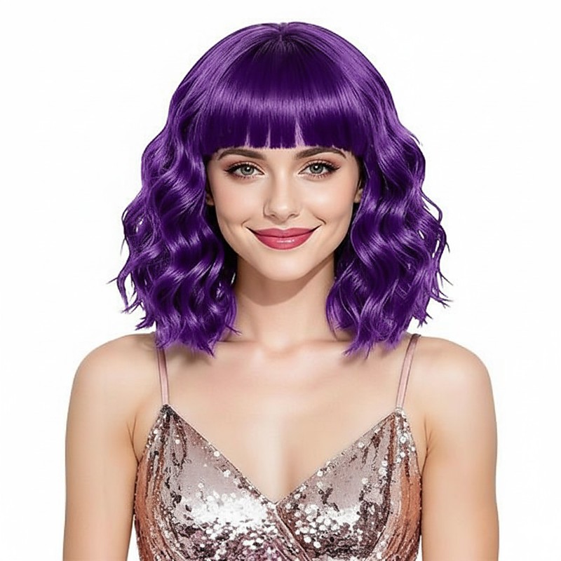 Synthetic Wig Wavy Bob Wig Short Pink Synthetic Hair Women's Cosplay Party Fashion Blue Purple Orange