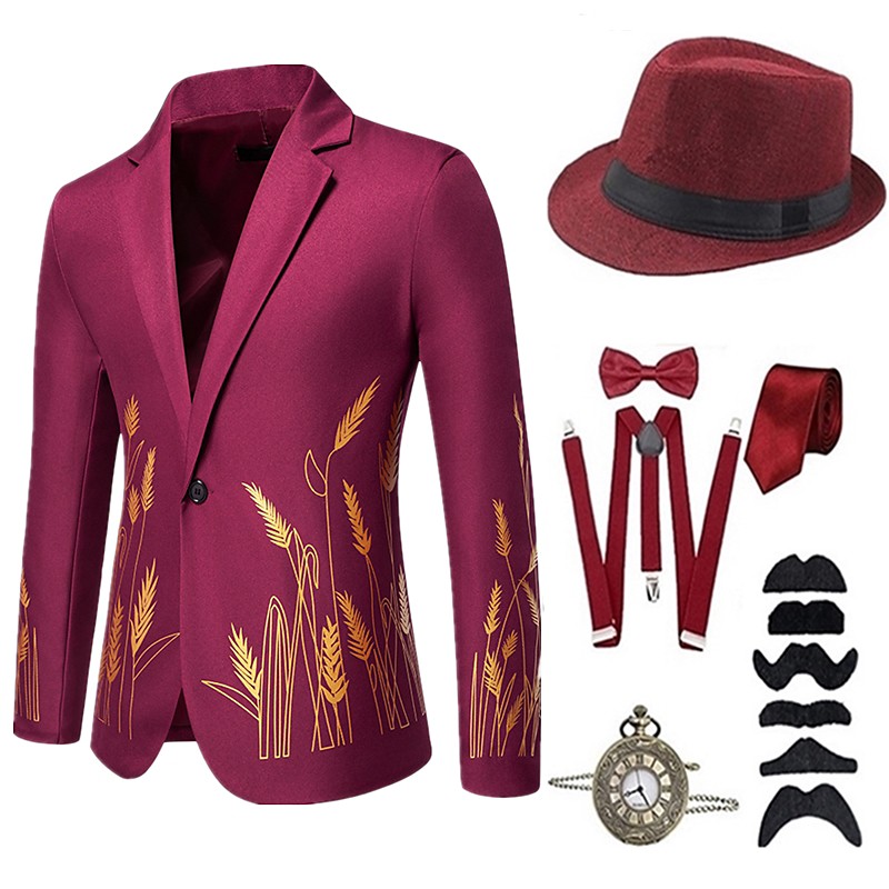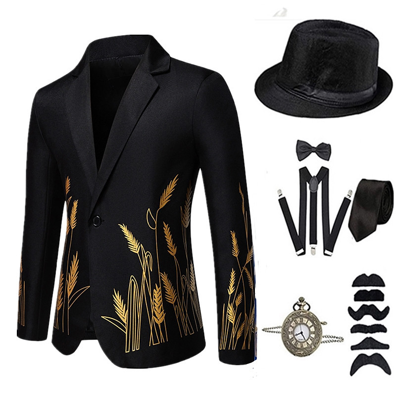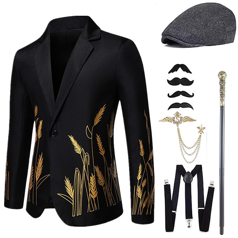 1920s Vintage Inspired The Great Gatsby Party Costume Accessories Set Printing Collarless Fancy Dress Men's Halloween Party Evening Casual Daily Adults' Coat All Seasons