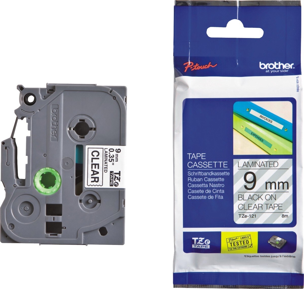 Brother Schriftband TZE121 9mm schwarz/transparent Packung mit 25 Stück