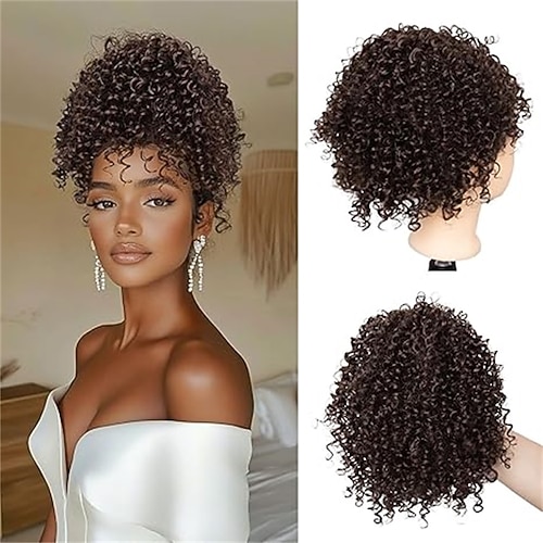 coda di cavallo con coulisse a soffio afro con clip per capelli ricci crespi con frangia estensioni dei capelli coda di cavallo corta updo posticci per le donne nere