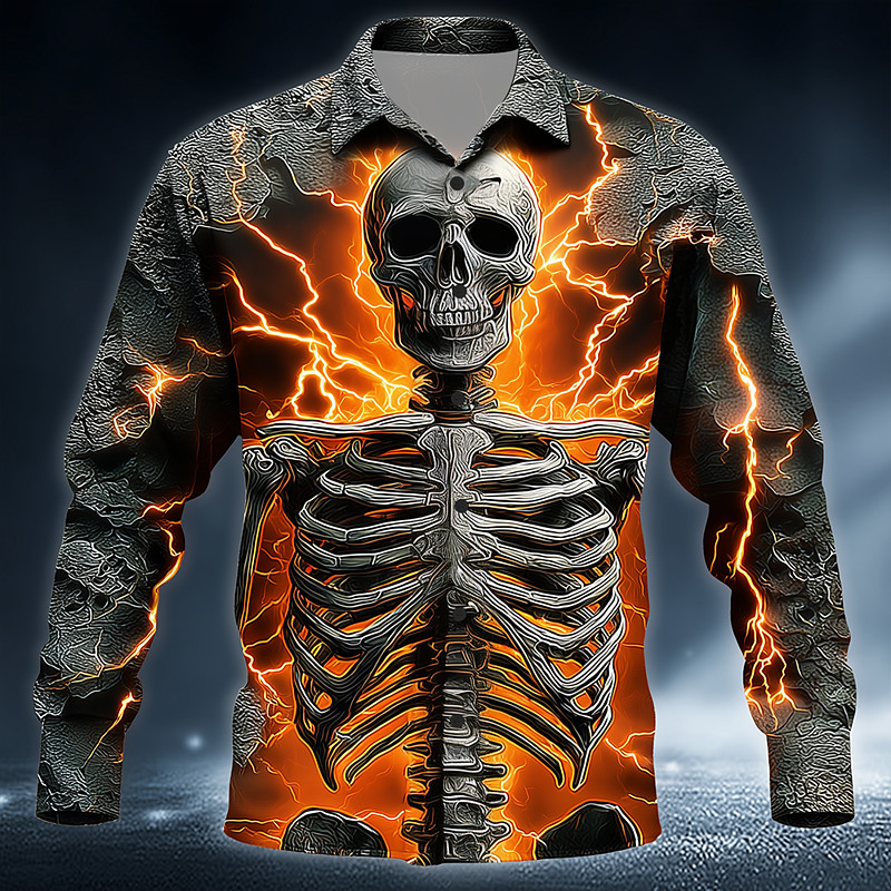 Men's Skull Lightning Skeleton Shirt Button Up Shirt Long Sleeve Dark Punk Gothic Style Outdoor Holiday Summer Spring Turndown 3D Print Collared Shirts Orange / Gray Dark Gray