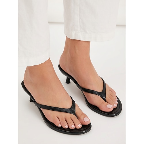 Elegante schwarze Zehentrenner-Sandalen für Damen – Kitten-Heel-Flip-Flops mit schmalen Riemchen für Strandurlaube und luxuriöse Yachtpartys Sommerliche Resort-Abendgarderobe
