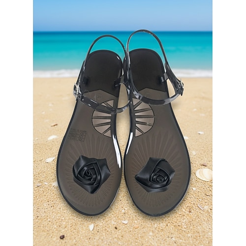 Leuchtend rote Jelly-Sandalen für Damen – wasserfeste Sommer-Flip-Flops mit romantischem Seidenrosen-Dekor für Strandurlaube und tropische Partys Resort-Kleidung