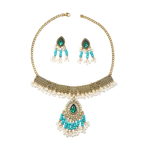 set di gioielli in lega bohémien da donna con pietre turchesi: collana, orecchini e bracciale, disponibili in più colori, perfetti per occasioni informali e festive