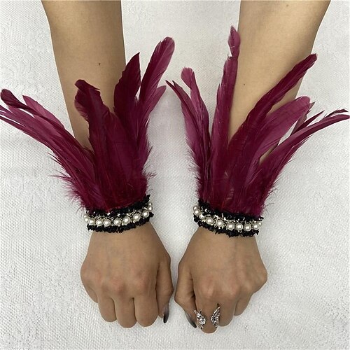 Accessori Samba Carnevale 2026 Rio Carnevale Polsini Piume Nere Donna con Pizzo di Perle 1 Paio di Braccialetti Piuma Naturale Costume per Festival in Brasile