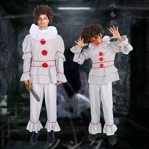 Costume di Carnevale 2026 Clown Pennywise Carnevale Costume di fantasia Tuta Costumi di Gruppo per Famiglie di Halloween esso Orrore Costume Spaventoso Bambini Adulti Per uomo Ragazzi Halloween