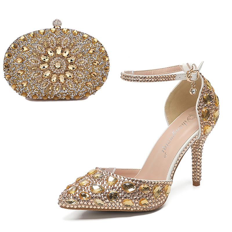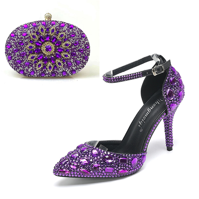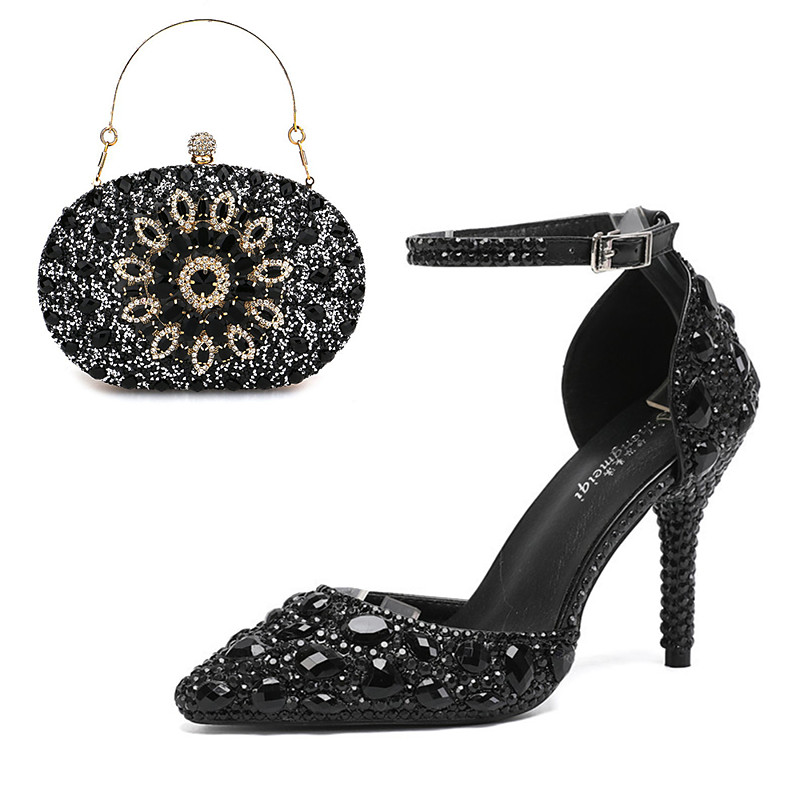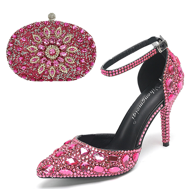 Women's Cocktail Club Party Rhinestone Crystal Buckle Stiletto Pointed Toe Fashion Cute Luxurious PU Buckle Silver Orange red Black and Purple