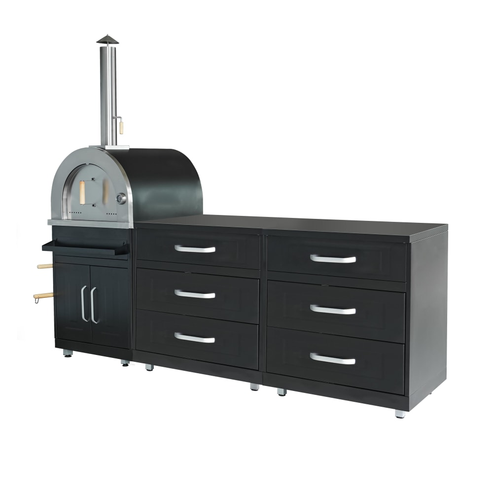 Cucina da esterno a 3 pezzi con forno per pizza nero