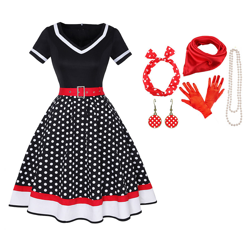 50s Outfit Flare Dress Belt 7 Pcs 1950s Accessories Set Retro Vintage Swing Dress Women's Cosplay Costume Party Date Festival