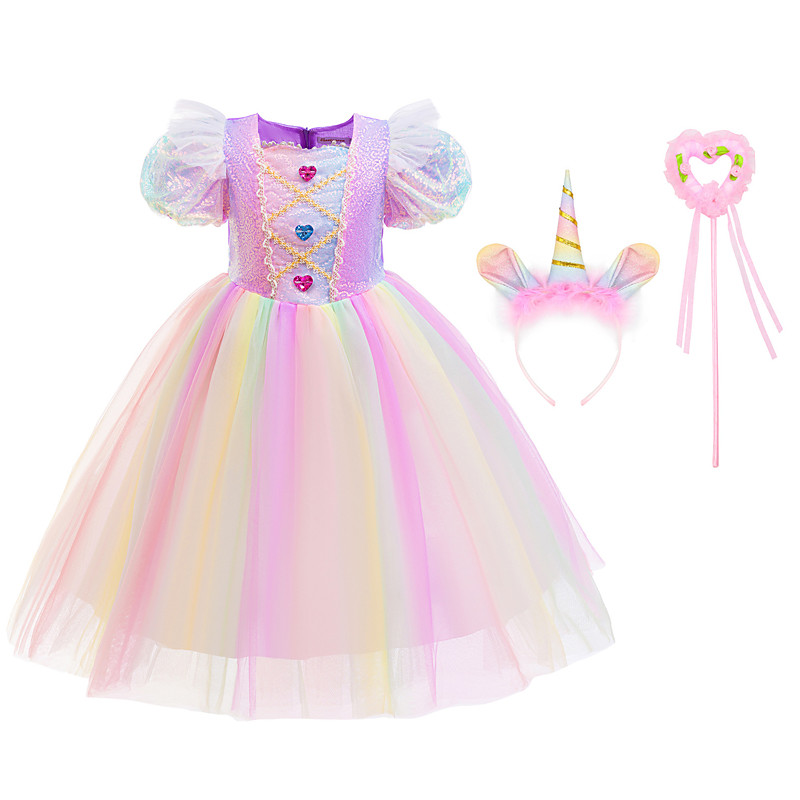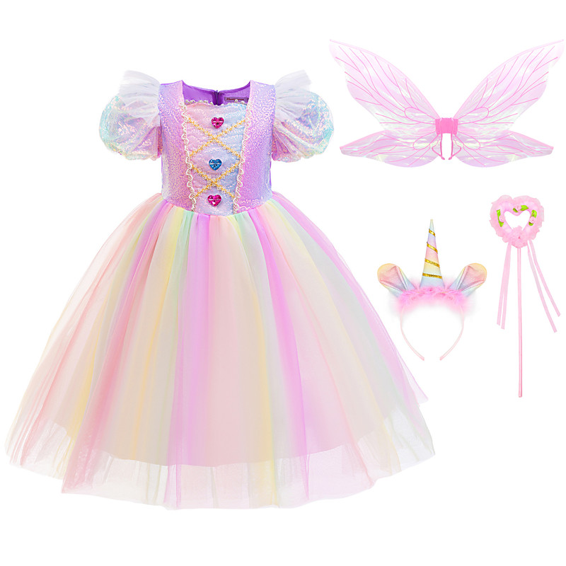 Unicorn Dress Wings Headband Girls' Movie Cosplay Dance Tight Tutus Vacation Dress Golden Blue Rainbow Dress Wings Headwear Halloween Carnival Princess World Book Day Costumes
